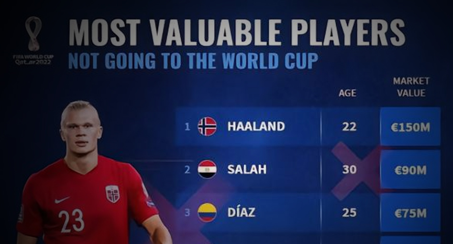 全球无缘卡塔尔世界杯球员身价榜,哪位是你的菜呢?欢迎老铁留言交流。