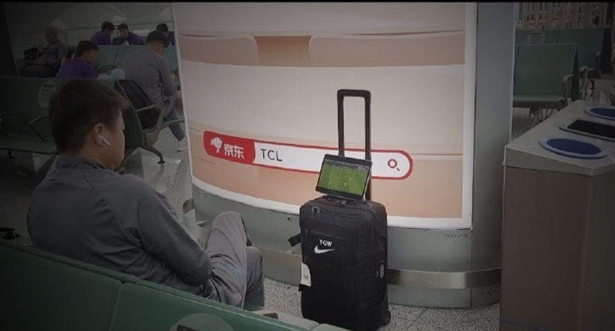 从徐国玺拍摄的照片看,于根伟在回天津候机时,就通过观看比赛视频来研究下轮对手亚泰队。