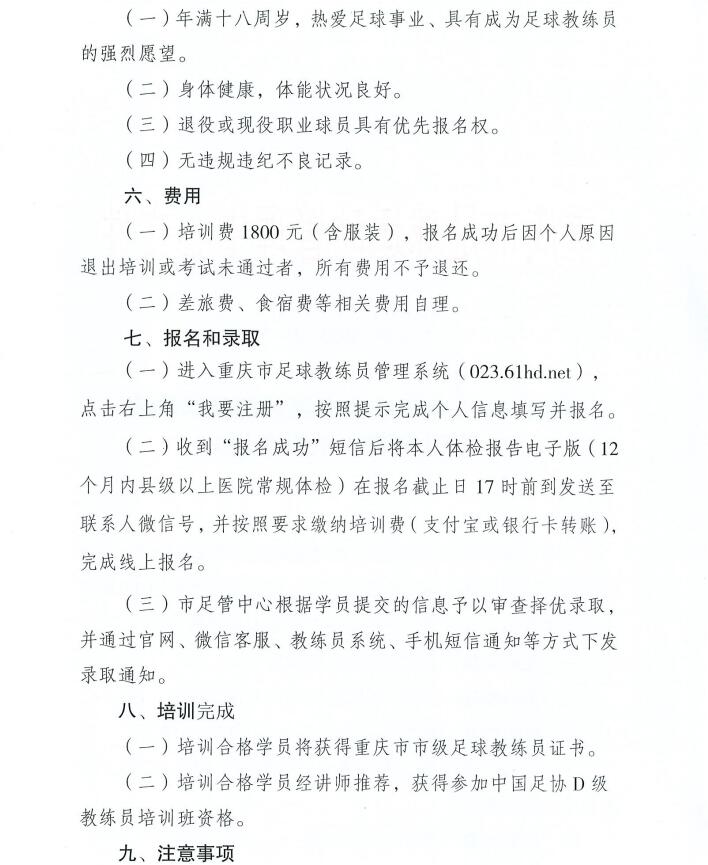 重庆市足协 | 2023年 市级 第14期培训班报名通知