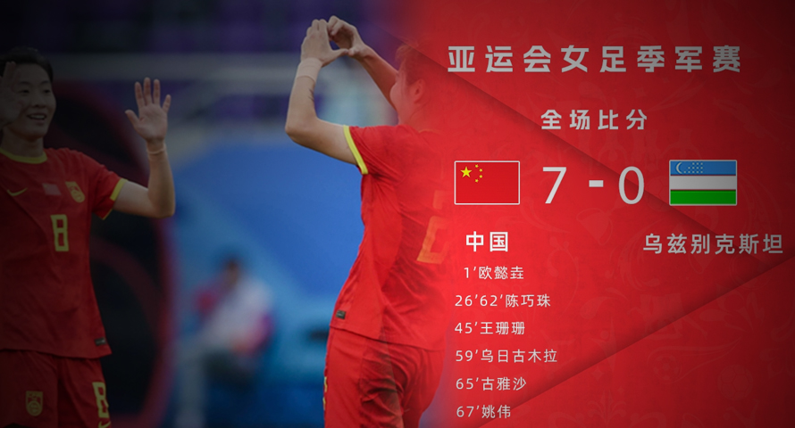 下半场乌日古木拉头球建功,陈巧珠头球完成双响,古雅沙替补建功,姚伟抽射扩大比分,最终中国女足7比0大胜乌兹别克斯坦女足取得铜牌.